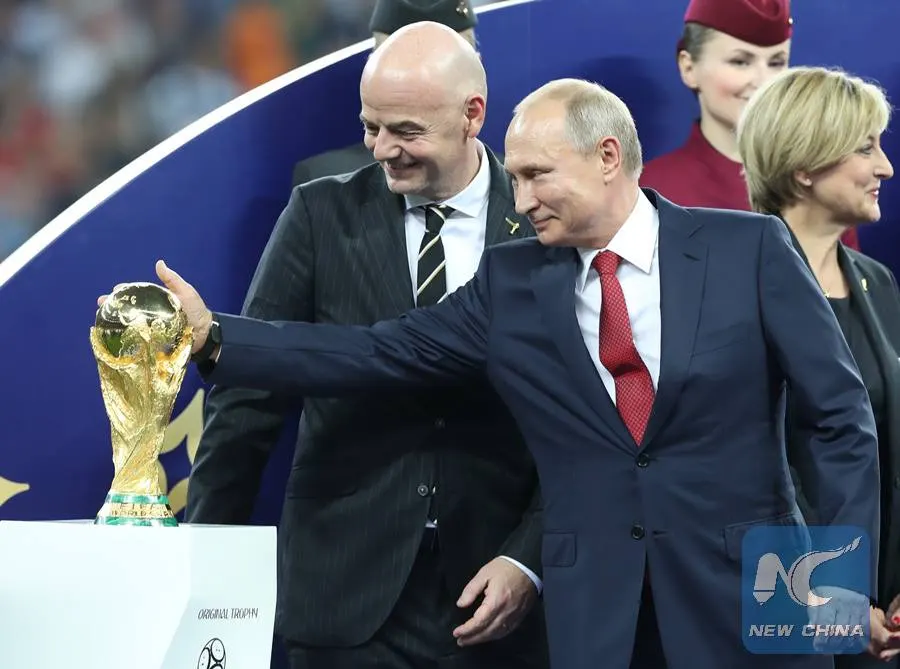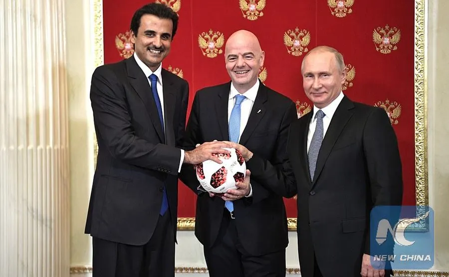 แถลงการณ์ระบุว่าปูตินได้ส่งมอบลูกฟุตบอลโลกพื้นสีขาวลายสีแดงแก่เจ้าผู้ครองนครรัฐกาตาร์ ซึ่งจะเป็นประเทศเจ้าภาพจัดการแข่งขันฟุตบอลโลกครั้งต่อไประหว่างวันที่ 21 พ.ย. จนถึงวันที่ 18 ธ.ค. 2022 ณ พิธีการซึ่งจัดขึ้นในห้องโถงอาร์โมเรียล พระราชวังฤดูหนาว นครเซนต์ปีเตอร์สเบิร์ก