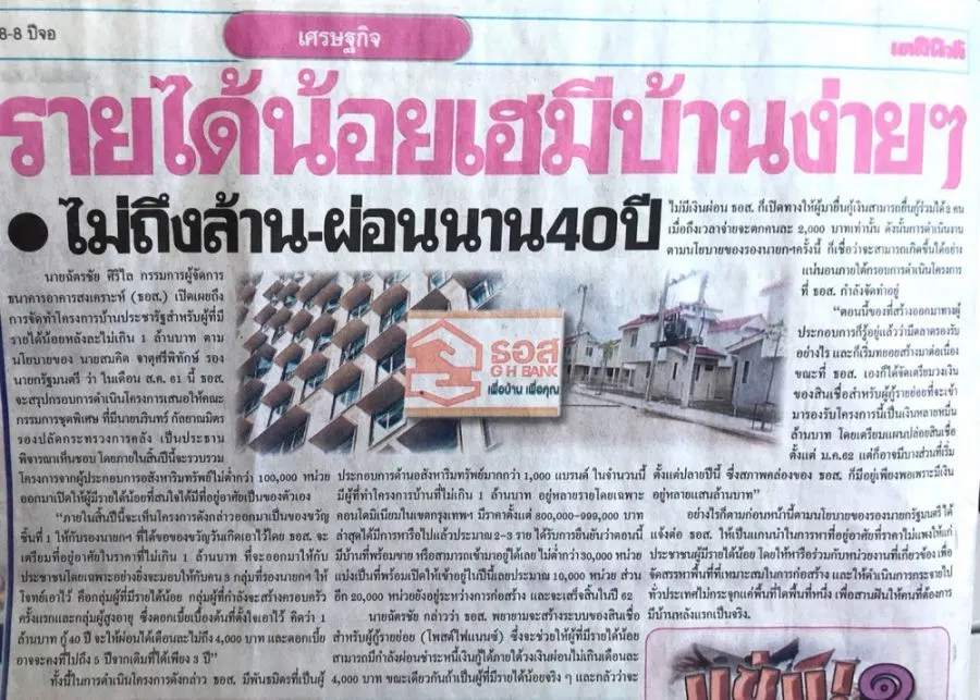 ตามที่มีข่าวในวันนี้ 18 กรกฎาคม 2561 ว่าธนาคารอาคารสงเคราะห์ (ธอส) มีแผนจะปล่อยกู้สำหรับผู้มีรายได้น้อยโดยให้ผ่อนชำระค่างวดเป็นเวลานานถึง 40 ปี ดร.โสภณให้ความเห็นว่านี่อาจเป็นนโยบายที่ไม่เหมาะสม