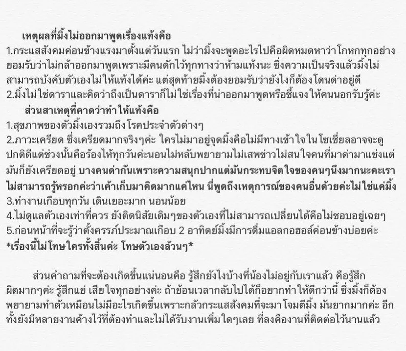 "มิ้ง ศวภัทร" แท้งแล้ว ลั่น "ขอกลับไปใช้ชีวิตปกติเหมือนเดิม"