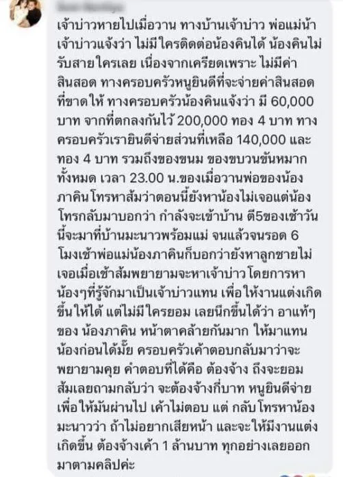 เจ้าสาวเก็บตัวเงียบ ส่วนญาติไปแจ้งความแล้ว กรณีเจ้าสาวถูกทิ้งกลางงานแต่ง
