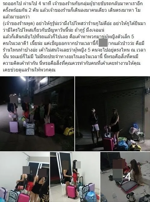 ผู้ใช้เฟซบุ๊ครายหนึ่งได้ออกมาโพสท์เรื่องของพวกเธอที่ถูกเจ้าของร้านไล่ออกจากบ้านกลางดึก โดยพวกเธอทั้ง 5 คน ได้มาทำงานที่ร้านแห่งหนึ่ง แต่ทำได้เพียง 2 วันก็เกิดเรื่องหลังจากบอกกับเจ้าของร้านว่า ขอตัดแท็ค (การขอจบการทำงานก่อนกำหนด) เพราะลูกค้าเงียบมาก ไม่มีใครได้ดื่มเลยซักคน ซึ่งทางเจ้าของร้านก็ตอบว่าแล้วแต่ จากนั้นก็ขึ้นรถแต่ไม่ได้ไปร้านสะดวกซื้อ กลับพามาส่งที่บ้านพัก