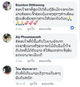 ล่าสุดเพจเฟซบุ๊กข่าวของสปป.ลาว ได้โพสต์ภาพทีมกู้ภัยมูลนิธิฮุก 31 ที่เตรียมเข้าช่วยเหลือในพื้นที่ ทำให้ชาวเน็ตลาวจำนวนมาก เข้ามาแสดงความคิดและขอบคุณอาสากู้ภัยจากไทยเป็นจำนวนมาก