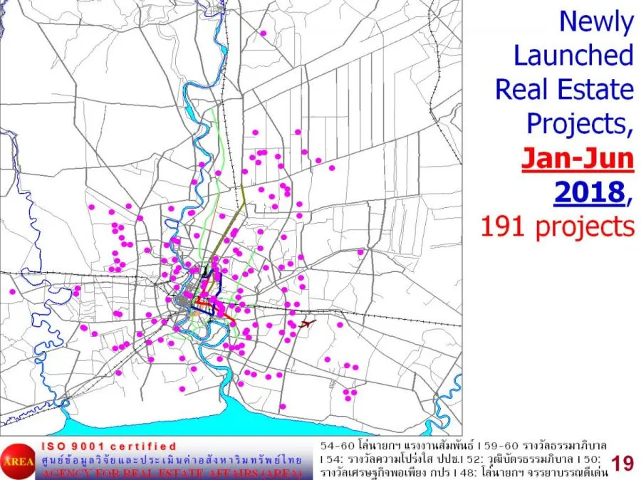 การเปิดตัวโครงการใหม่ในครึ่งปีแรกจำนวน 191 โครงการ (ที่อยู่อาศัย 189 โครงการ และ อสังหาริมทรัพย์ประเภทอื่นๆ 2 โครงการ โดยการพัฒนาส่วนใหญ่จะอยู่ในพื้นที่ชั้นใน ชั้นกลางและพื้นที่รอบนอก ที่มีแหล่งงานหรือแหล่งชุมชนที่อยู่อาศัย เป็นสำคัญ ซึ่งการพัฒนาหลักยังเป็นการพัฒนาอาคารชุดและพัฒนาโดยผู้ประกอบการรายใหญ่เป็นสำคัญ โดยภาพรวมครึ่งปีแรกมีโครงการใหม่ลดลง 13 โครงการ (-6%) มีจำนวนหน่วยเปิดใหม่รวม 45,942 หน่วย ลดลง 8,366 หน่วย (15%) มีมูลค่าโครงการ 187,258 ล้านบาท ลด 2,739 ล้านบาท (1%) เมื่อเปรียบเทียบกับครึ่งปีแรก 2560