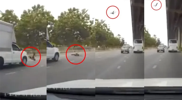 สยองมาก คลิปหน้ารถจับภาพหนุ่มกะเหรี่ยงอมก๋อยตกจากทางยกระดับบรมฯ