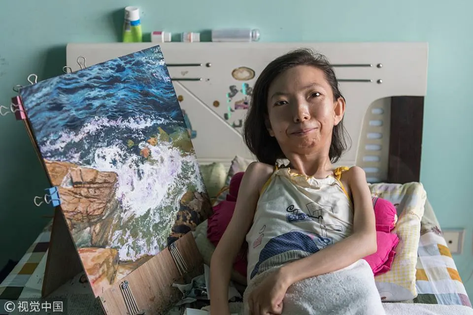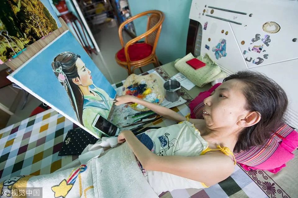 ชีวิตต้องสู้! หญิงจีนอัมพาตผู้วาดภาพขายจากบนเตียง
