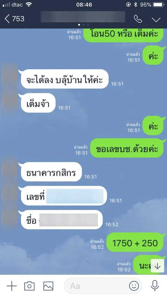 จากนั้นก็ไปที่พักที่ที่ 2 ที่จองไว้แล้ว แต่เจ้าของกลับบอกว่า เต็ม! โดยอ้างเพียงว่าลืม เลยให้คนอื่นเข้าไปพักแทน ทั้งๆที่เธอได้ทำการจองและโอนเงินให้เต็มจำนวนแล้ว ทั้งยังบอกด้วยว่า มีบ้านหลังอื่นเหลือ แต่จะคิดราคาเต็ม ถ้าหากจะเอาบ้านหลังอื่นก็ต้องจ่ายเงินเพิ่ม อ้างเพราะราคาที่โอนมาตอนแรก ลดให้ 50%