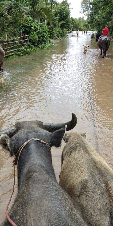 ระดับน้ำเพิ่มสูงขึ้นชาวบ้านต้องนำสัตวเลี้ยงออกจากตัวหมู่บ้านขึ้นเนินสูง เส้นทางหลักของหมู่บ้านกระแสน้ำไหลเเรงมาก รถเล็กไม่สามารถสัญจรได้ และคาดว่าระดับน้ำจะเพิ่มมากขึ้นอย่างต่อเนื่อง
