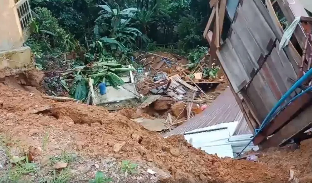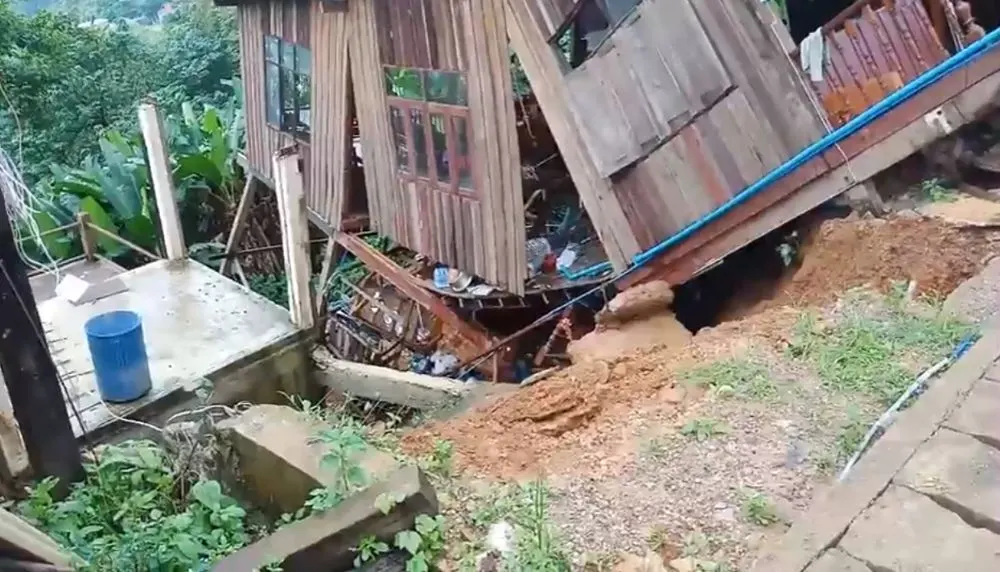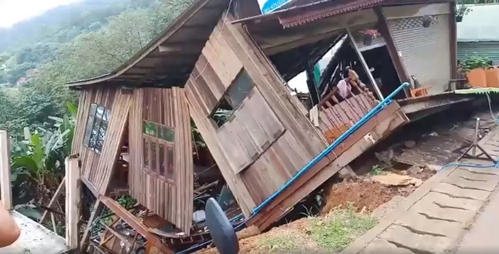 นาทีดินสไลด์ ค่อยๆพังบ้านทั้งหลังไปต่อหน้าต่อตา ที่ภูชี้ฟ้า