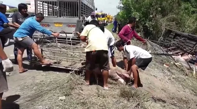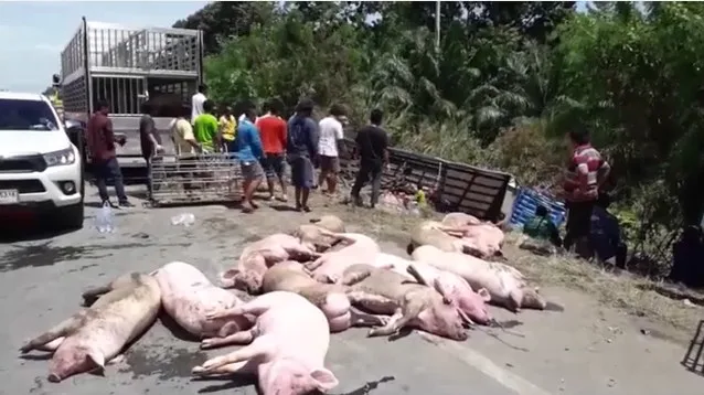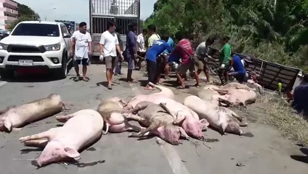 1 สิงหาคม 2561 เฟซบุ๊กLine Share โจโฉ โพสท์คลิปสลดรับวันฝนตกระบุว่า รถบบรรทุกหมู เสียหลักเพราะถนนลื่น ก่อนไปชนเก๋งและพุ่งไปชนรถ Jeep ทำ อส.เมืองนครปฐม ดับคาซากรถ ส่วนหมูที่บรรทุกมา 90 ตัว ทั้งตายและบาดเจ็บเกลื่อนข้างทาง เจ้าหน้าที่รีบกู้ซากและช่วยเหลือ และระบายการจราจรทำลักทุเล