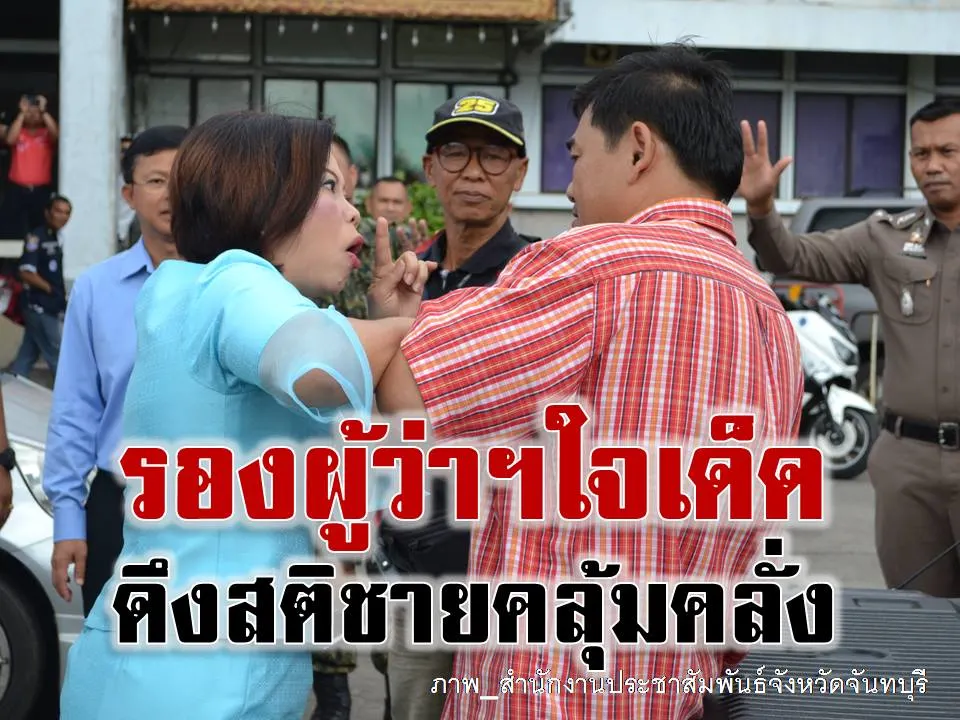 รองผู้ว่าฯหญิง จันทบุรี ใจเด็ด เข้าห้ามทัพดึงสติชายคลุ้มคลั่งที่ขู่ทำร้ายตัวเอง หน้าศาลากลาง เพื่อร้องขอความเป็นธรรม