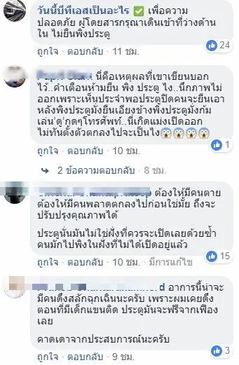 อย่างไรก็ตามชาวเน็ตต่างเข้ามาคอมเม้นท์ว่าเหตุผลที่ไม่ควรยืนพิงประตูขณะรถไฟฟ้าวิ่ง เพราะอาจจเกิดเหตุอันตรายถึงแก่ชีวิตได้..หากประตูเปิดแบบกรณีนี้ ...