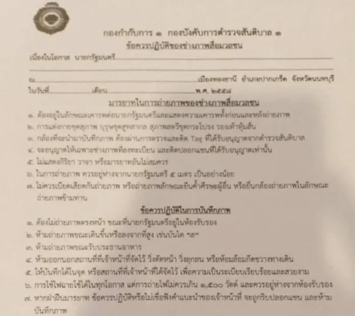 เข้มสื่อถ่ายรูปนายก ต้องทำความเคารพก่อนและหลังถ่ายภาพ ห้ามเข้าใกล้5เมตร