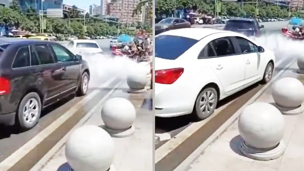 ต่อแถววนไป!เมื่อท่อดับเพลิงข้างถนนแตกมหกรรมล้างรถจึงเกิด