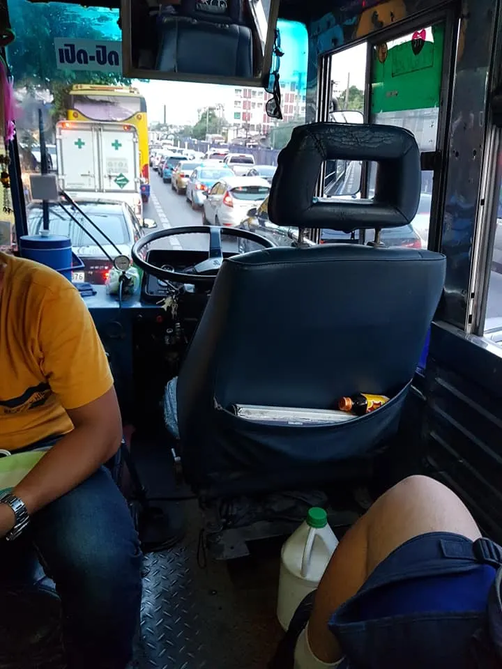ไทยแลนด์แดนรถติด ถึงขั้นคนขับ-กระเป๋ารถเมล์ลงไปนั่งเล่นชิลๆริมฟุตบาท