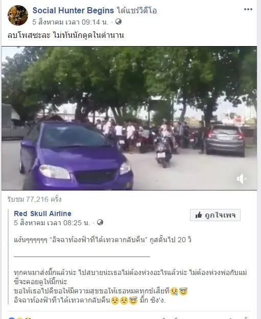 เมื่อวันที่ 5/8/2561 ที่ผ่านมา ทางเพจ Social Hunter Begins ได้แชร์ คลิปวีดีโอ งานศพของวัยรุ่นคนนึงที่เสียชีวิตจากการขับมอเตอไซค์ พร้อมข้อความของเพื่อนผู้เสียชีวิตที่บรรยายใต้คลิปว่า