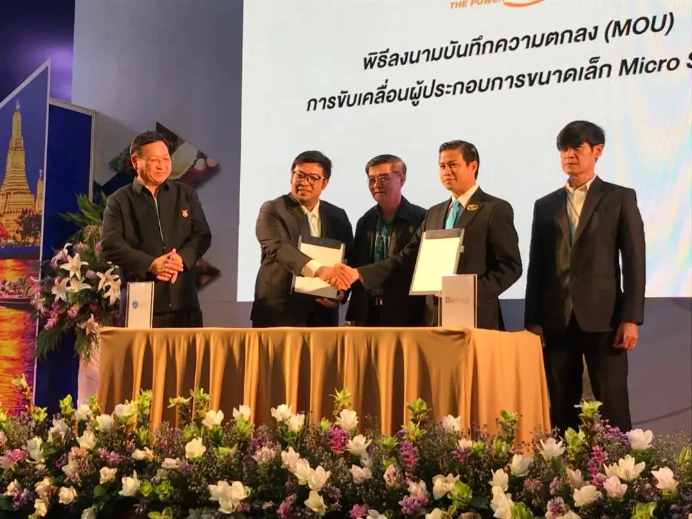 ดร.เอราวัณ ทับพลี นายกสมาคมนักธุรกิจเอสเอ็มอีรุ่นใหม่ ลงนามความร่วมมือ(MOU) กับ ดร.กรัณย์ สุทธารมณ์ ประธานเครือข่ายธุรกิจ Biz Club Thailand เพื่อสนับสนุนการพัฒนาศักยภาพ Micro SMEs ร่วมกันโดยมี นายสาโรจน์ สุวัติถิกุล รองอธิบดีกรมพัฒนาธุรกิจการค้า กระทรวงพาณิชย์ ให้เกียรติ ร่วมเป็นสักขีพยาน ณ เวทีกลาง งานรวมพลังธุรกิจขับเคลื่อนเศรษฐกิจฐานราก Power of the Local Economy ณ ฮอลล์ 4 อิมแพ็ค เมืองทองธานี