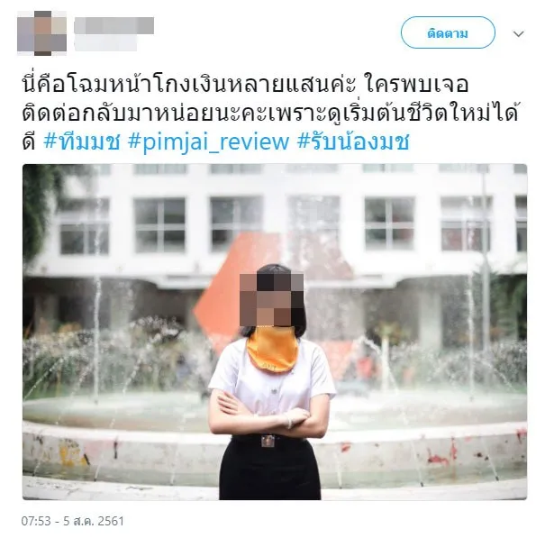 สืบเนื่องจากเพจ “สโมสรนักศึกษาวิทยาลัยศิลปะ สื่อ และเทคโนโลยี” ของมหาวิทยาลัยเชียงใหม่ ได้โพสต์ภาพแนะนำตัวนักศึกษาชั้นปีที่ 1 โดยหนึ่งในนั้นได้มีนักศึกษาคนหนึ่งถูกชาวเน็ตแฉว่า “นี่คือโฉมหน้าโกงเงินหลายแสนค่ะ ใครพบเจอ ติดต่อกลับมาหน่อยนะคะเพราะดูเริ่มต้นชีวิตใหม่ได้ดี #ทีมมช #pimjai_review #รับน้องมช”