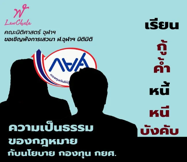 นิติศาสตร์จุฬาฯจัดเสวนาเรื่อง'เรียน กู้ ค้ำ หนี้ หนี บังคับ:ความเป็นธรรมของกฏหมายกับนโยบายกองทุน กยศ.' ถกเหตุหนี้เสียที่ผู้จัดการ กยศ.แจงตัวเลขผิดนัดชำระหนี้สูงถึง 2.1ล้านราย และต้องฟ้องผู้กู้ยืมปีละ1แสนคนรวม 1.1ล้านราย ขณะที่ผู้บริหารเครดิตบูโรเผย กยศ.ยังไม่เป็นสมาชิกและไม่ส่งข้อมูลลูกหนี้เข้าระบบ ชี้คุณภาพการศึกษาบ่มเพาะบัณฑิตออกมาเป็นแบบไหน