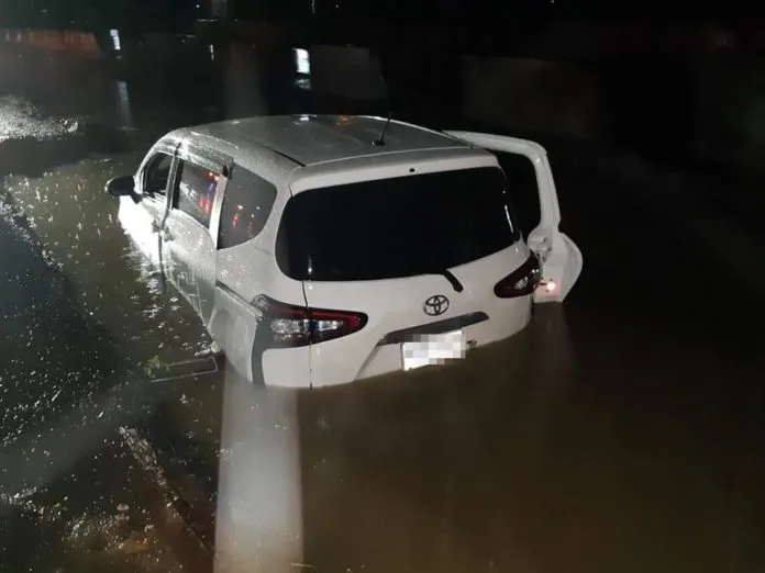 ภาพที่กำลังแชร์กันในโลกออนไลน์ ซึ่งเป็นอุบัติเหตุที่เกิดขึ้นขณะฝนตก เกิดเหตุคนขับรถขับตกลงไปบริเวณข้างถนนที่กำลังก่อสร้างไหร่ทาง เนื่องจากน้ำท่วมสูงไม่มีป้ายเตือน โดยสมาชิกเฟซบุ๊กคุณ Nattakarn MeeMe ได้โพสต์ข้อความว่า