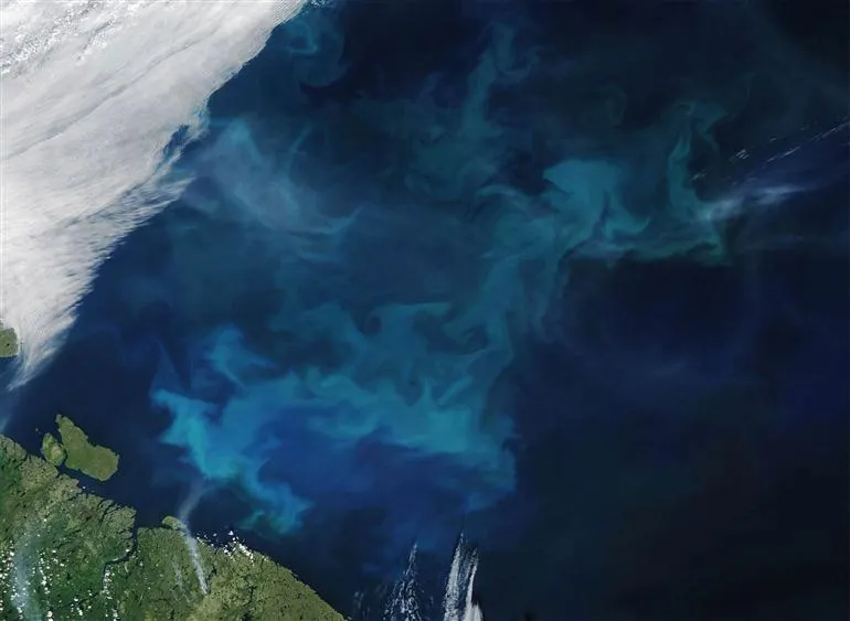 ในทุกๆ หน้าร้อนที่มหาสมุทรแอตแลนติกเหนือและแถบอาร์กติกเหล่าแพลงก์ตอนพืชจะมีการเจริญเติบโตอย่างรวดเร็วและมีจำนวนมาก จำทำให้ผืนน้ำในมหาสมุทรกลายเป็นสีเขียวกระจายพื้นที่หลายกิโลเมตร โดยในปีนี้ที่ฟินแลนด์ดูจะมีการแพร่กระจายเป็นจำนวนที่มหาศาลเอามากๆ ภาพถ่ายจากดาวเทียม Landsat-8 เมื่อวันที่ 18 กรกฎาคมที่ผ่านมาเผยให้เห็น การขยายตัวของแพลงก์ตอนขนาดมหาศาล บริเวณอ่าวฟินแลนด์ บางภาพดูเหมือนกับอ่างน้ำวนขนาดมหึมา