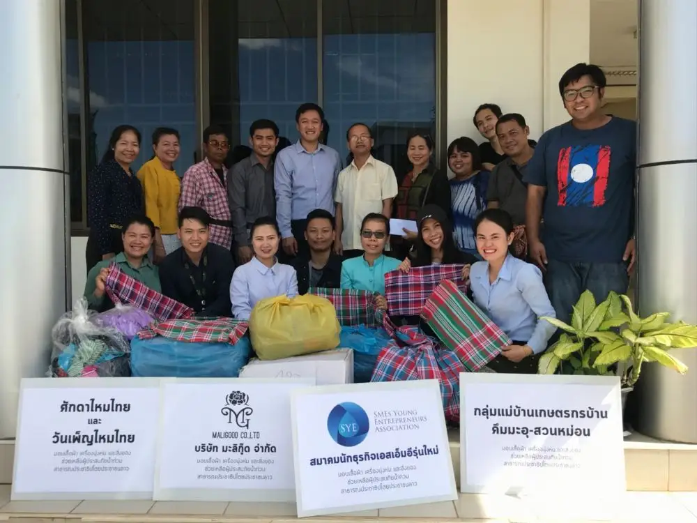 ดร.เอราวัณ ทับพลี นายกสมาคมนักธุรกิจเอสเอ็มอีรุ่นใหม่ และ ผู้ช่วยรองอธิการบดีฝ่ายกิจการนักศึกษามหาวิทยาลัยกรุงเทพธนบุรี เป็นผู้แทนนำเงินและสิ่งของของใช้ จากนักธุรกิจรุ่นใหม่ของไทย นักศึกษาหลักสูตรผู้บริหารยุคใหม่ NEW ERA มหาวิทยาลัยกรุงเทพธนบุรี กลุ่มแม่บ้านเกษตรกรคึมมะอุ-สวนหม่อน ช่วยเหลือชาว สปป.ลาวผู้ประสบอุทกภัยจากเขื่อนพัง โดยมี นายยางป่าว ป่าเย่วื้อ รองอธิบดีกรมพัวพันและร่วมมือกับต่างประเทศ สาธารณรัฐประชาธิปไตยประชาชนลาว เป็นผู้แทนรับมอบ ณ เมืองเวียงจันทน์ สาธารณรัฐประชาธิปไตยประชาชนลาว