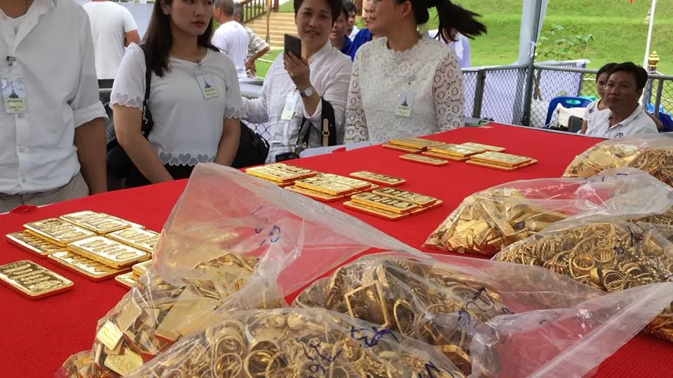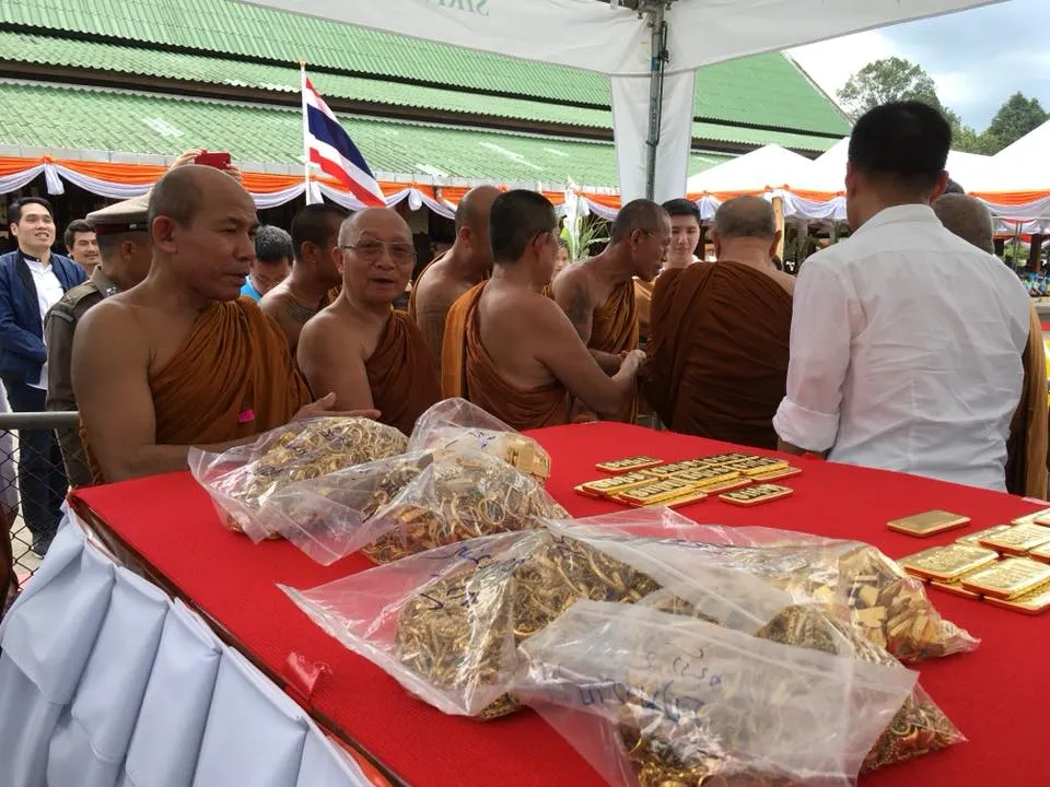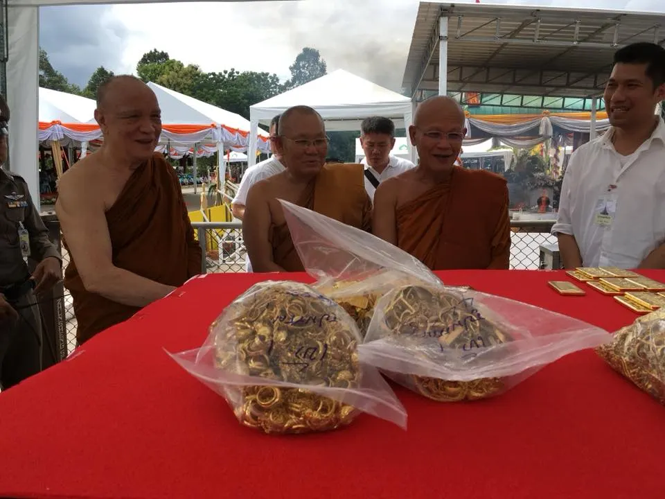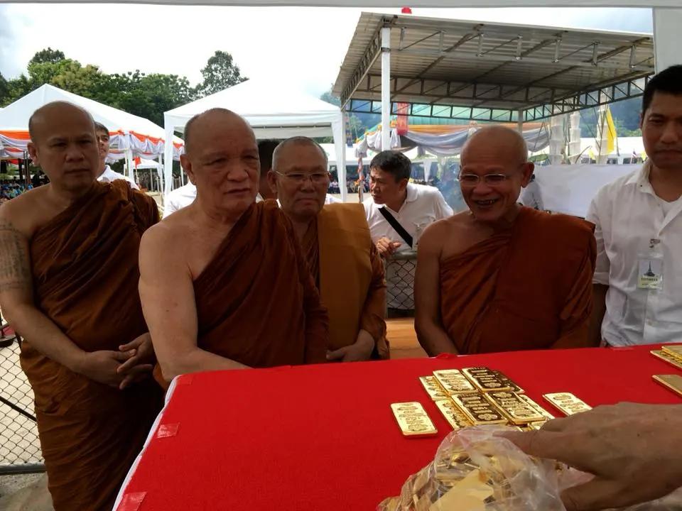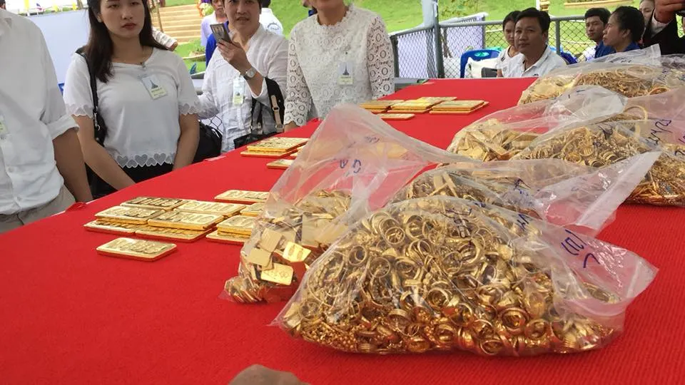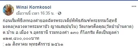 ก่อนเริ่มพิธีเททองคำยอดฉัตรพระเจดีย์พิพิธภัณฑ์พระธรรมวิสุทธิมงคล(หลวงตาพระมหาบัว ญาณสมฺปนฺโน) วัดเกษรศีลคุณ(วัดป่าบ้านคาด) ต.บ้าน อ.เมือง จ.อุดรธานี รวมทองคำ ๑๓๐ กิโลกรัม คิดเป็นมูลค่า ๑๒๗,๔๐๐,๐๐๐บาท