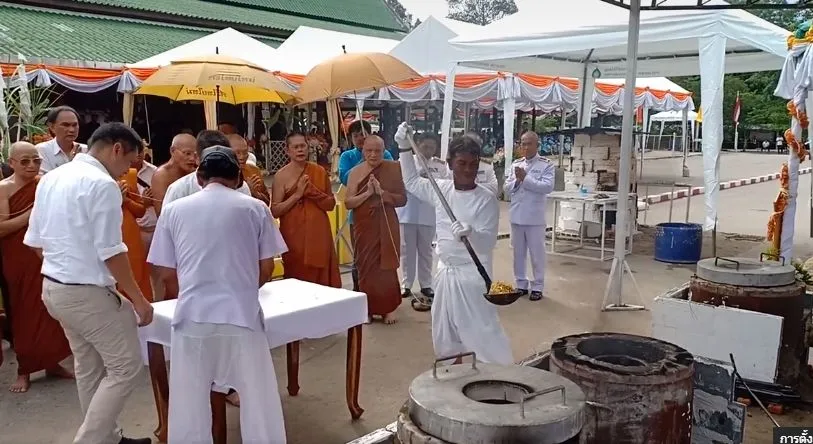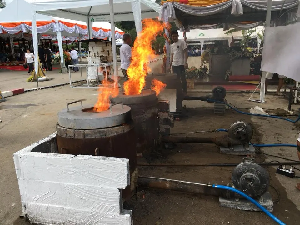 ช่วงนำทองเข้าเบ้าหลอมเพื่อหล่อยอดฉัตรพระเจดีย์ในโครงการก่อสร้างพิพิธภัณฑ์ธรรมเจดีย์พระธรรมวิสุทธิมงคล(หลวงตาพระมหาบัว ญาณสัมปันโน)ที่วัดป่าบ้านตาด