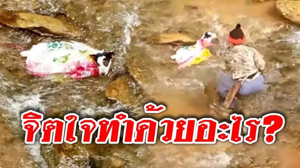 จิตใจคนยิ่งกว่าใจสัตว์! จับน้องหมายัดใส่ถุงปุ๋ย ปล่อยลอยน้ำ