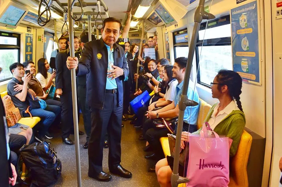 “นายกฯบิ๊กตู่” ขึ้นรถไฟฟ้า ปะปนกับประชาชน เดินทักทายคนในขบวนรถ พร้อมพูดคุยกับนักท่องเที่ยวชาวต่างชาติที่ใช้บริการรถไฟฟ้า แถมยังลุกให้ ผู้โดยสารคนอื่นนั่งแทนเก้าอี้ตัวเอง บิ๊กตู่ บอกว่า สิ่งที่รัฐบาลทำมาทั้งหมดก็ทำให้กับประชาชน เพื่อให้ได้รับบริการที่สะดวกสบาย และมีอนาคตที่ดี