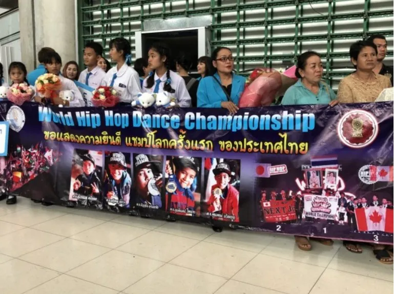 นอกจากนี้เด็กๆก็ยังได้โชว์สเต็ปแดนซ์สดๆ ไม่มีเพลงประกอบกลางสนามบิน ให้กับพ่อแม่และคณะครูที่มาคอยต้อนรับอยู่ด้วย เรียกได้ว่าแม่ไม่มีเพลงประกอบแต่จังหวะแดนซ์อยู่ในหัวใจ เต้นได้สุดไม่มีหยุดกั๊ก สมแล้วที่ได้แชมป์กลับมา สร้างความภาคภูมิใจให้พ่อแม่ ครูอาจารย์และคนไทยทั้งประเทศ ขอแสดงความยินดีและขอชื่นชมเด็กไทยกลุ่มนี้ด้วยครับ ..