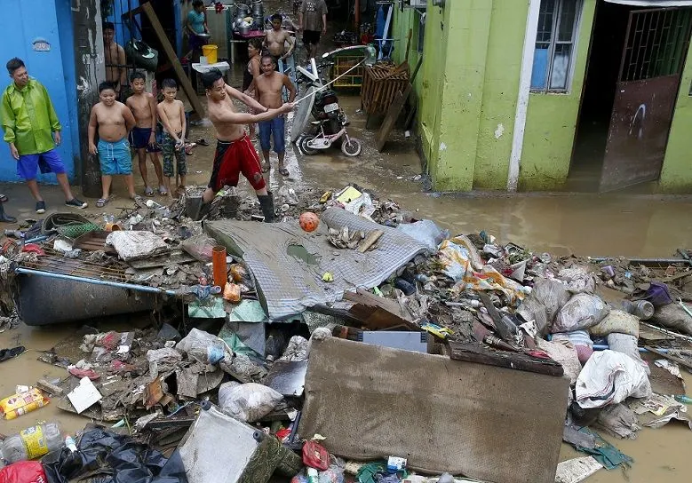 พนักงานเทศบาลของกรุงมะนิลาต้องพบกับความยากลำบาก เมื่อลมมรสุมได้พัดเอากองขยะจำนวนมากกลับคืนสู่ฝั่ง ที่มีทั้งขยะพลาสติก กล่องโฟม และยาง ฯลฯน้ำที่ท่วมทะลักเข้ามาสู่ถนน Roxas Boulevard หน้าอ่าวมะนิลา พัดพานำขยะมหาศาลมาด้วยจนต้องปิดการจราจร