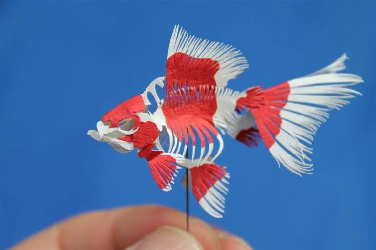ยุงกระดาษ และสัตว์กระดาษเหล่านี้ นี่คือผลงานศิลปะจากกระดาษของ Masanobu Azami ศิลปินจากประเทศญี่ปุ่น ผู้ที่ได้ฉายาว่า Scissorhands ผู้ที่เนรมิตกระดาษให้เป็นงานอันสวยงามโดเด่น แน่นอนว่าเขาไม่ได้พับมันอย่างเดียว แต่ใช้การตัดแต่ง ต่อเติม เป็นรูปร่างต่างๆ ผลงานของเขานั้นมีความสวยงามและเป็นเอกลักษณ์ และหลายๆ ชิ้นก็เป็นงานขนาดเล็กจิ๋ว ขนาดว่ายุงยังแทบจะเท่ากับขนาดจริงเลยทีเดียว แถมยังเหมือนสุดๆ อีกด้วย งานแต่ละชิ้นนั้นดูละเอียดมากๆ ว่าแล้วก็ไปชมผลงานบางส่วนของเขากันเลยครับ
