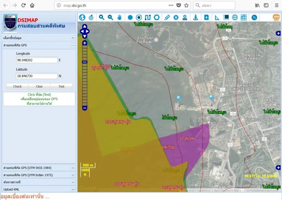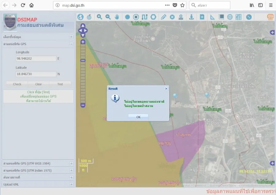 ภาพที่ 4: การตรวจสอบที่ดินเบื้องต้นกับเว็บไซต์ของ DSI