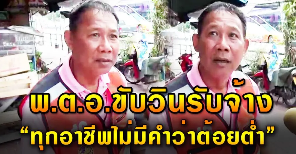 โดยท่านขับวินมา 20 ปีแล้ว ก็มีบ้างที่คนดูถูก แต่ตนไม่สนใจเพราะเป็นอาชีพสุจริต ฝากบอกด้วยว่า ตำแหน่งหัวโขน อย่าไปยึดติด ตายไปก็เอาอะไรไปไม่ได้ ตอนเรารุ่งก็คนเยินยอ พอเราล้มมีแต่คนซ้ำ ไม่มีใครจริงใจ ถ้าอาชีพสุจริตก็ทำไป อย่าไปกังวลว่าอาชีพโน้นมันต้อยต่ำ ทุกอาชีพไม่มีคำว่าต้อยต่ำ ทุกอาชีพสูงเสมอ วิ่ง จยย.ส่ง ลูกจบปริญญาตรีมา 2คนแล้ว