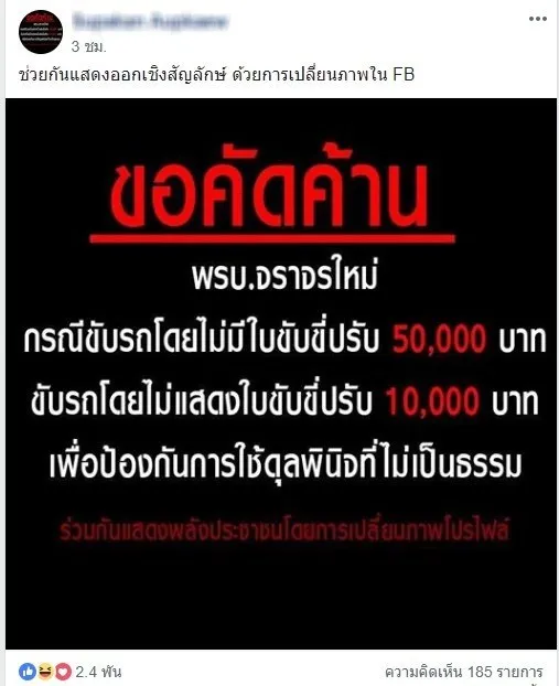 ชาวเน็ตแห่แสดงพลัง! คัดค้านพรบ.จราจรใหม่ปรับหนัก1-5หมื่นบาท ป้องกันการใช้ดุลพินิจไม่เป็นธรรม!