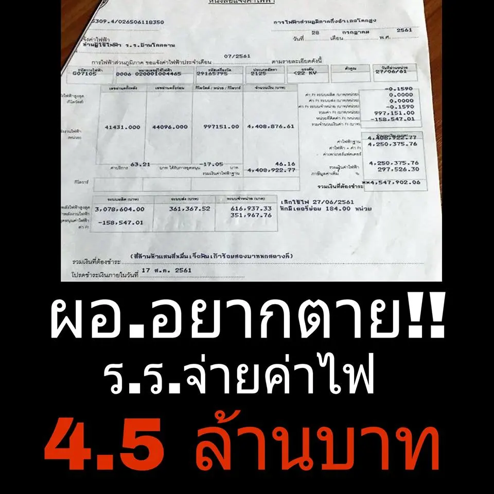 ผอ.รร.ประถมมือสั่น!! ได้รับบิลเก็บค่าไฟ สูงถึง 4.5 ล้านบาท!! จะเอาที่ไหนไปจ่าย!