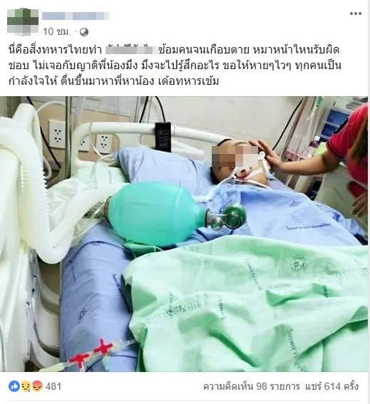 ผบ.ทบ.แจงไม่ใช่ถูกซ่อม หลังพลทหารอาการปางตาย เมียอุ้มท้องจุงลูกอีกคนเฝ้า