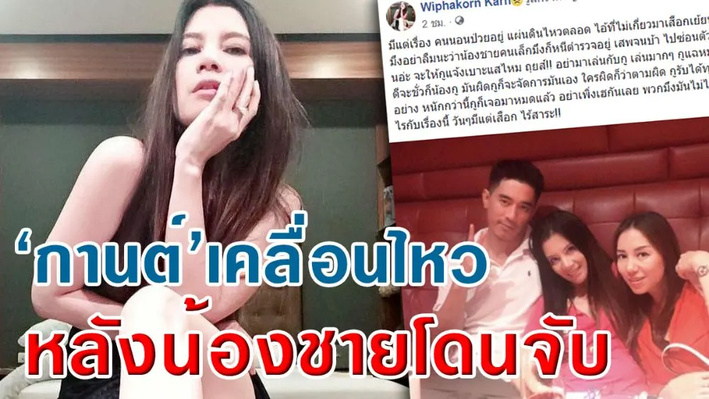 ทั้งนี้กานต์ก็ได้โพสท์เคลื่อนไหวบนเฟซบุ๊ก หลังจากที่น้องชายโดนตำรวจจับกุมระบุว่า มีแต่เรื่อง คนนอนป่วยอยู่ แผ่นดินไหวตลอด ไอ้ที่ไม่เกี่ยวมาเสือกเย้ยหยันกู ...อย่าลืมนะว่าน้องชายคนเล็ก...ก็หนีตำรวจอยู่ เสพจนบ้า ไปซ่อนตัวไหนอ่ะ จะให้กูแจ้งเบาะแสไหม ถุยส์!! อย่ามาเล่นกับกู เล่นมากๆ กูแฉหมด จะดีจะชั่วก็น้องกู มันผิดกูก็จะจัดการมันเอง ใครผิดก็ว่าตามผิด กูรับได้ทุกอย่าง หนักกว่านี้กูก็เจอมาหมดแล้ว อย่าเพิ่งเฮกันเลย พวก...มันไม่ได้เกี่ยวไรกับเรื่องนี้ วันๆมีแต่เสือก ไร้สาระ!!