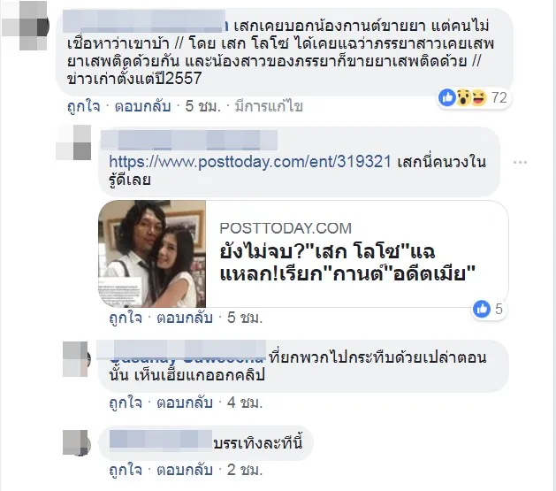 จนลูกเพจ Drama-addict ท่านหนึ่ง ออกมา วิจารณ์ว่า "เสกเคยบอกน้องกานต์ขายยา แต่คนไม่เชื่อหาว่าเขาบ้า // โดย เสก โลโซ ได้เคยแฉว่าภรรยาสาวเคยเสพยาเสพติดด้วยกัน และน้องสาวของภรรยาก็ขายยาเสพติดด้วย // ข่าวเก่าตั้งแต่ปี2557"