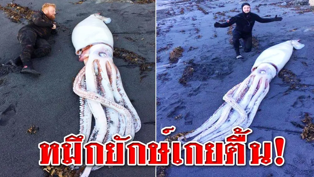 ตะลึง ‼️ สามพี่น้องพากันไปดำน้ำ พบหมึกยักษ์ประหลาดยาวกว่า 4.3เมตร เกยชายหาด‼️