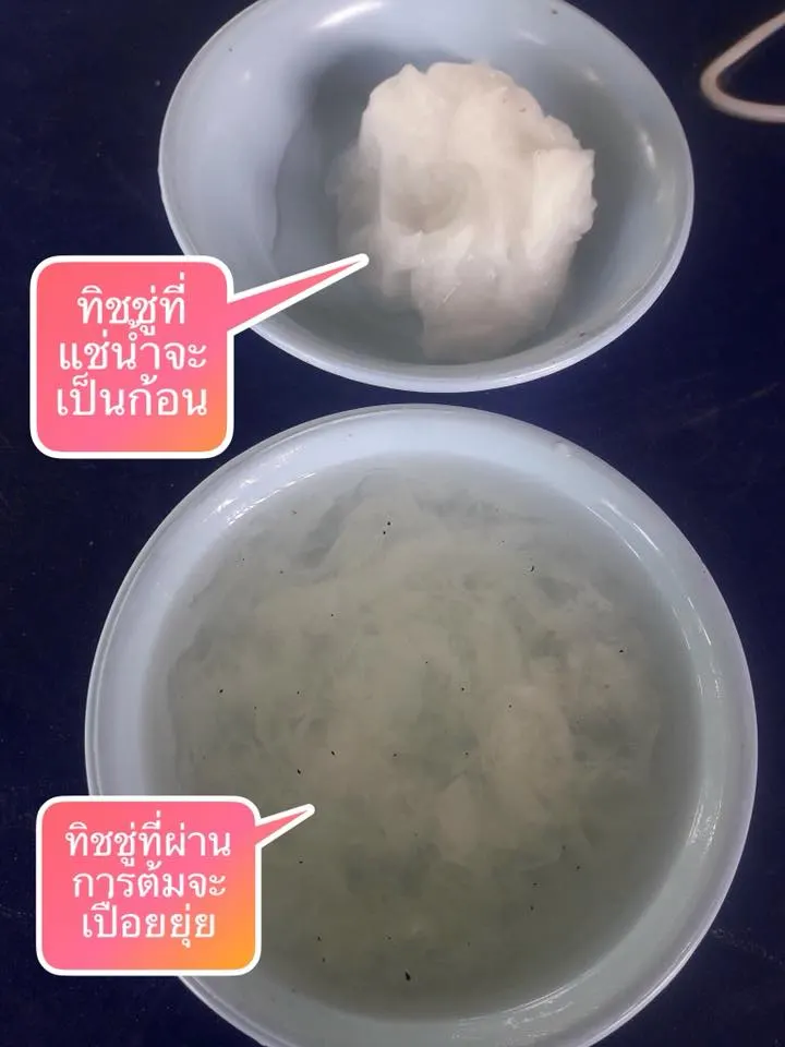 แต่เมื่อคลิปถูกโพสท์ออกไปมีผู้มาแสดงความคิดเห็นเป็นจำนวนมาก รวมถึงผู้ที่สงสัยว่าทำไมทิชชู่ต้นแล้วยังไม่ยุ่ย โดยเปรียบเทียบด้วยการนำกระดาษชำระมาแช่น้ำ กับ มาต้ม ซึ่งเมนต์ดังกล่าวแจงว่า กระดาษชำระที่นำมาต้มเนื้อจะเปื่อยยุ่ย ไม่ได้เป็นก้อนเหมือนในคลิปของผู้โพสต์