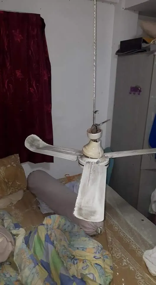 เตือนภัย อุบัติเหตุเกิดได้ทุกที่ทุกเวลาขนาดนอนอยู่บนเตียงยังเจ็บตัว พัดลมเพดานหลุด ถ้าใครมีพัดลมเพดานอายุการใช้งานนานแล้วตรวจเช็คด้วยนะคะ 10เข็มเบาๆ