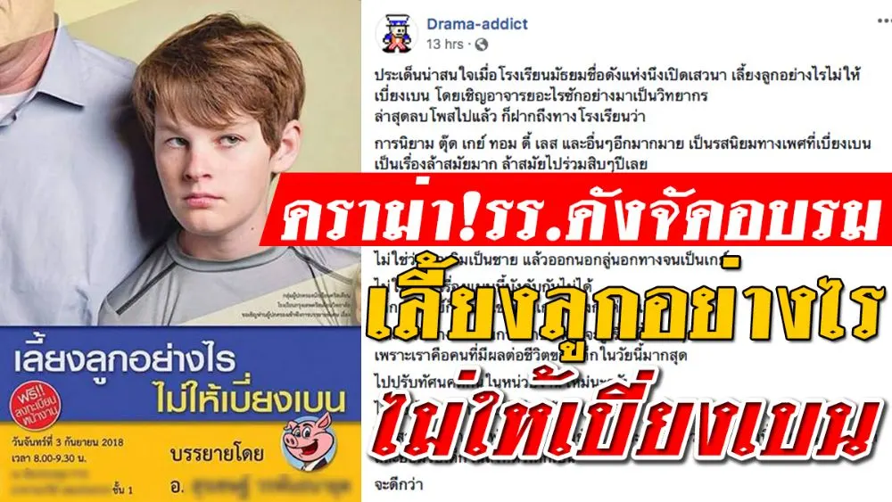 จากกรณีที่เกิดประเด็นดราม่า หลังจากที่โรงเรียนดังจัดบรรยาย “เลี้ยงลูกอย่างไร ไม่ให้เบี่ยงเบน” ทำให้เกิดกระแสตีกลับจากกลุ่ม LGBT และกลุ่มคนทั่วไป (อ่านข่าว ดราม่า! โรงเรียนเอกชนชื่อดัง จัดอบรมหัวข้อ “เลี้ยงลูกอย่างไร ไม่ให้เบี่ยงเบน” เจอกระแสตีกลับ! ลบโพสท์แทบไม่ทัน! คลิกที่นี่)