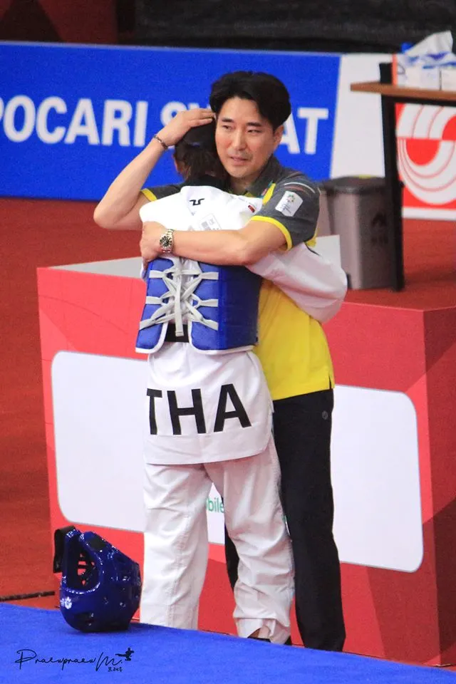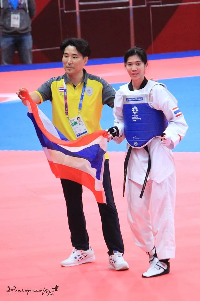 โค้ชเช เช ยอง ซอก กับ'น้องเทนนิส'พาณิภัค วงศ์พัฒนกิจ ผู้พิชิตเหรียญทองกีฬาเทควันโดในเอเชียนเกมส์ 2018