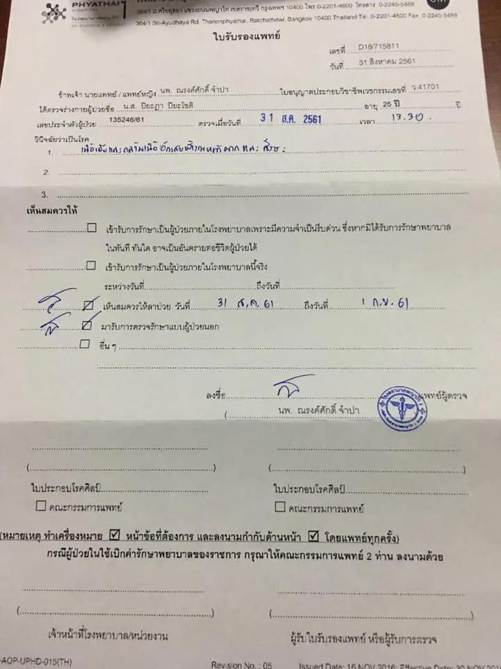 ไปตรวจร่างกายที่ ร.พ.มามีแค่ฟกช้ำที่ศรีษะ และหมอให้ประคบเย็นเพราะหัวโน ตอนนี้มีอาการปวดหัวและตาลาย ขอบคุณทุกท่านที่ให้ความช่วยเหลือทั้ง พี่ๆ ที่ทำงาน พลเมืองดี และพนักงานของคอนโด ตำรวจ