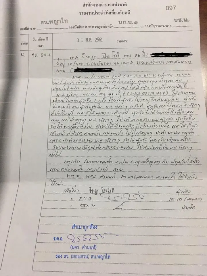 สุดท้ายตำรวจก็เชิญตัวคนร้ายไปอีกห้องนึง แล้วให้เราลงบันทึกประจำวันไว้ ตำรวจบอกเดี๋ยวจะส่งเค้าไปตรวจที่ศรีธัญญาว่าสติไม่ดีจริงมั้ยแล้วก็ให้เรากลับ