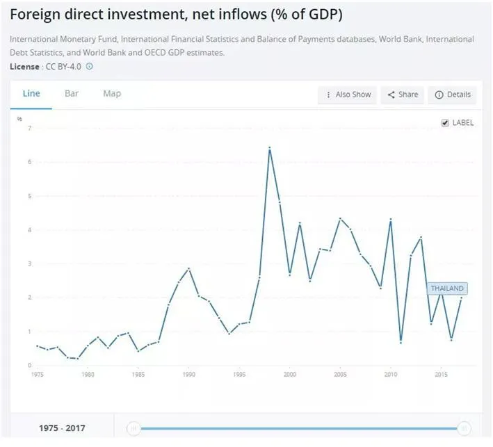 ที่มา: https://data.worldbank.org/indicator/BX.KLT.DINV.WD.GD.ZS?locations=TH