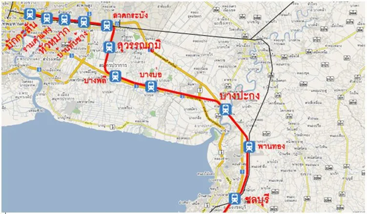 ทางรถไฟควรใช้เส้นทางกรุงเทพ-ชลบุรีสายใหม่ แทนที่จะต้องไปอ้อมที่ฉะเชิงเทรา มีผลประโยชน์ของใครอยู่แถวนั้นหรือไม่ การอ้อมนี้จะทำให้เพิ่มระยะทางไปประมาณ 15 กิโลเมตร ถ้าแต่ละเที่ยว แต่ละวัน ต้องเสียเวลาอ้อมระหว่างกรุงเทพมหานครและชลบุรี-ระยองไป เท่านี้ก็เป็นความสูญเสียมหาศาล