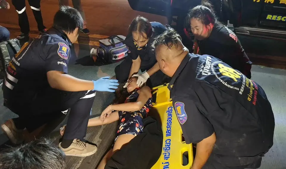 ทราบชื่อต่อมา นางสาว สุทธิกานต์ สุขเอก อายุ 21ปี ปวดแผ่นหลัง ขาซ้ายมีอาการทางกระดูก ถลอกตามร่างกาย เป็นผู้นั่งซ้อนท้าย รถจักรยานยนต์ บิ๊กไบค์คาวาซากิ Z 900 ทะเบียน 1 กฌ 4087 ชลบุรี สีดำ กู้ภัยสว่างให้การช่วยเหลือผู้ได้รับบาดเจ็บ เบื้องต้นก่อนเคลื่อนย้ายผู้ได้รับบาดเจ็บ นำส่งโรงพยาบาลเมืองพัทยา