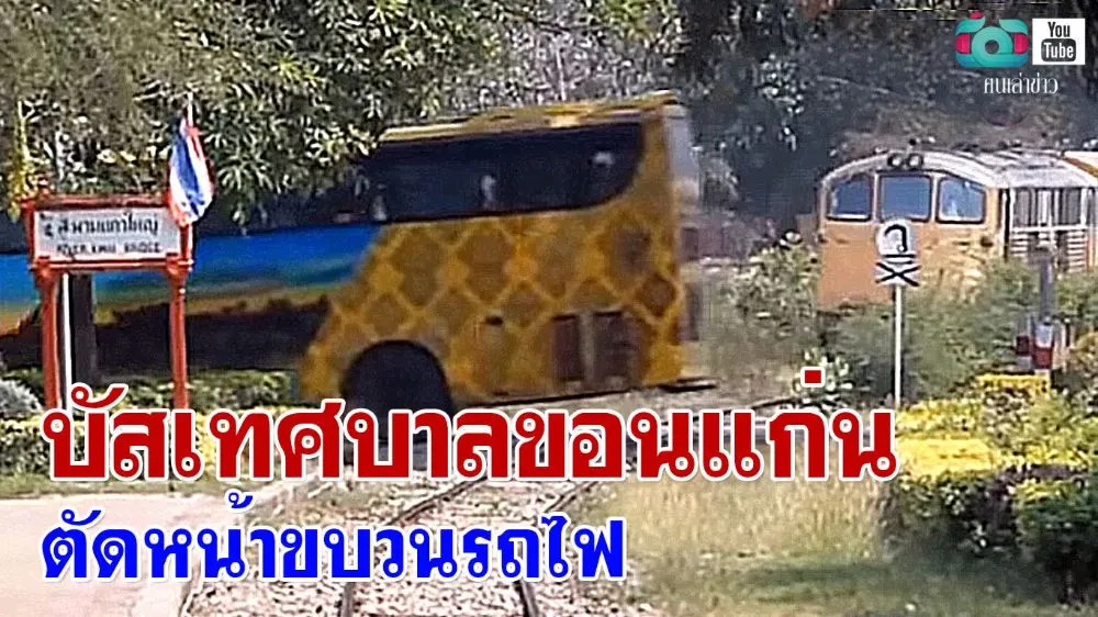สุดหวาดเสียว !!!รถบัสเทศบาลขอนแก่น ตัดหน้าขบวนรถไฟ